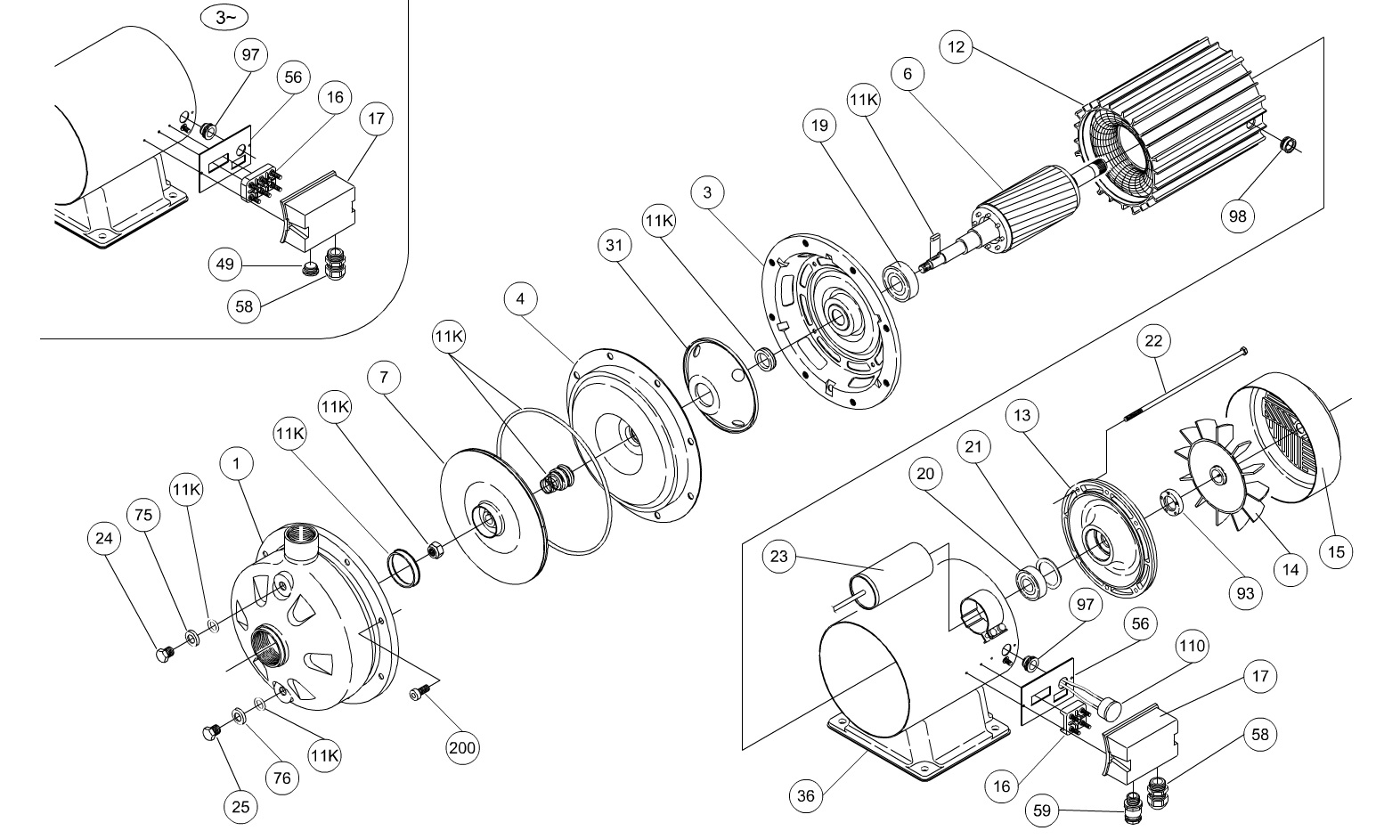 Pièces détachées de pompes EBARA CD - CD/I 120/12 IE3