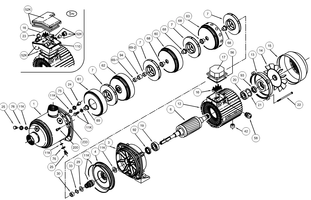 Pièces détachées de pompes EBARA MATRIX - MATRIX/I10-3T/1,3 IE3